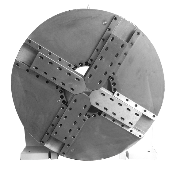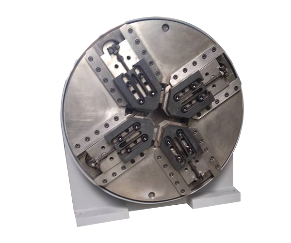 2、轉(zhuǎn)臺采用高度集成式設(shè)計方法,將卡盤、氣動組件、回轉(zhuǎn)支承、分度機構(gòu)、減速機構(gòu)